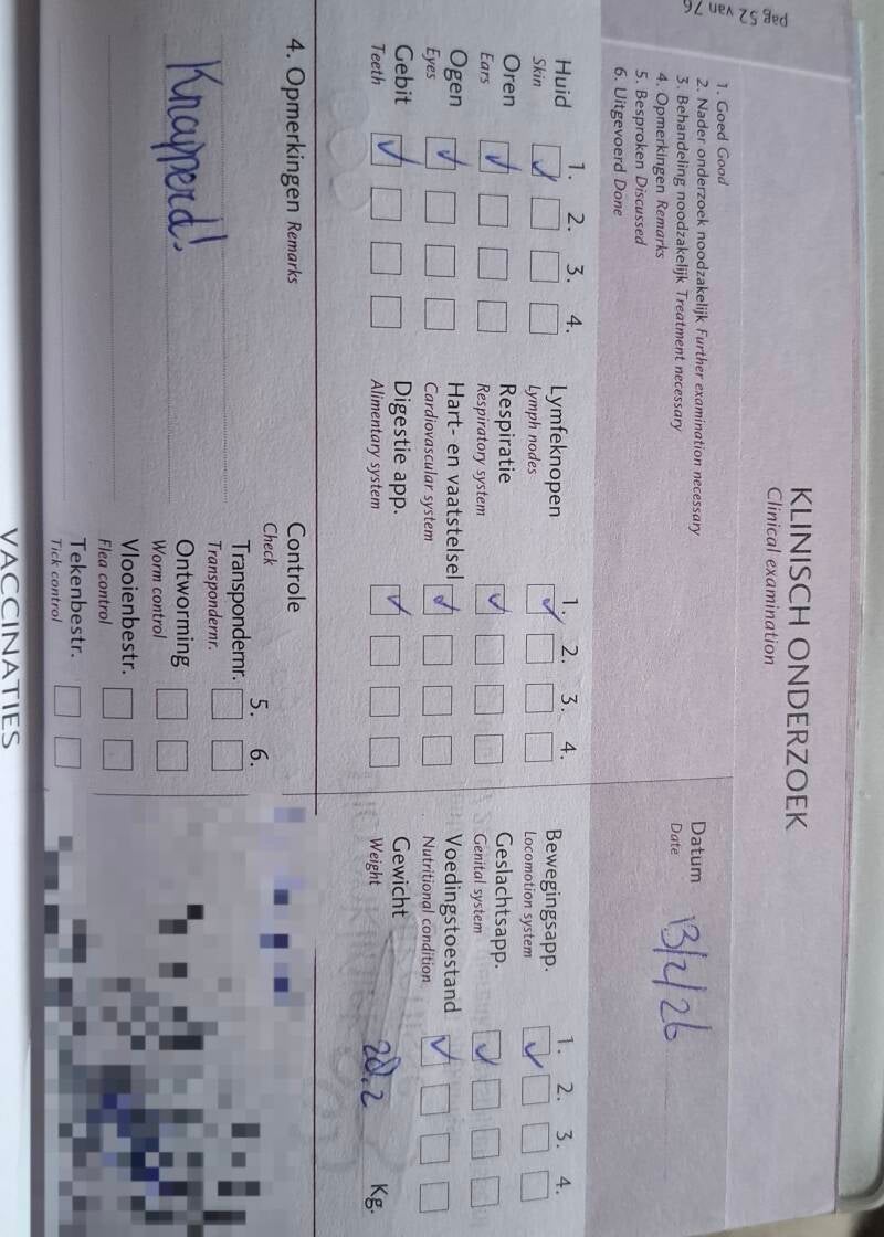 Nox moest vandaag naar de dierenarts voor de jaarlijkse controle. Alles was weer helemaal goed🥳 Ook was het tijd om haar na de kuur voor mycoplasma weer te testen. Ze heeft het weer super goed gedaan. Ze was ontzettend lief en braaf. Ze kreeg veel complimenten van de dierenarts en er is zelfs een compliment in haar paspoort geschreven. Hoe trots kan je zijn🥰